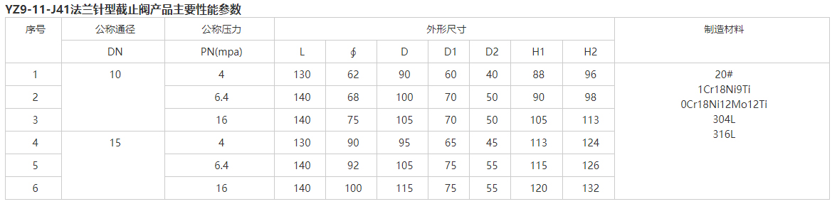YZ9-11-J41法兰针型截止阀