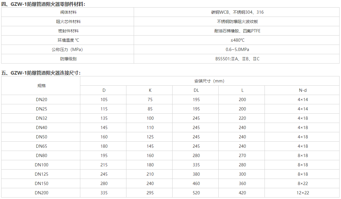 三、GZW-1防爆管道阻火器适用范围: