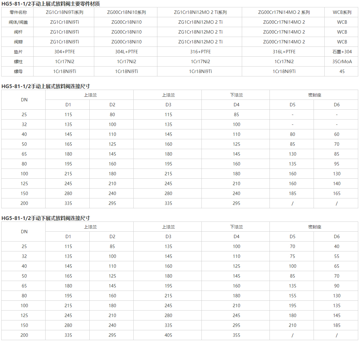 HG5-81手动上展式放料阀性能与用途