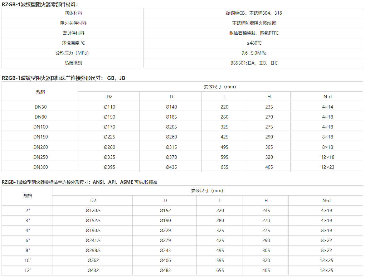 RZGB-1波纹型阻火器适用范围: