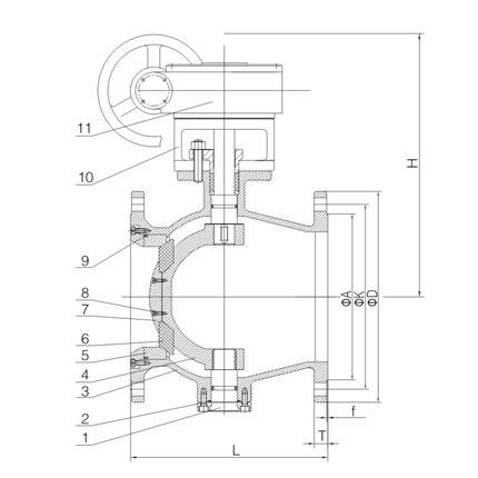 bpq340tc ceramic eccentric half ball valve main shape and connection dimensions: