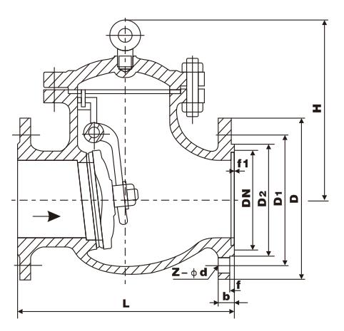 h44w/h/y api swing check valve main connection and dimensions and weight