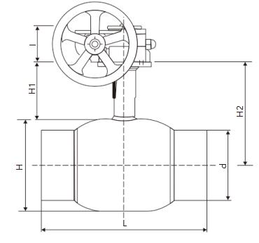 二 、Q367F固定蜗轮式焊接球阀产品尺寸: pn16/pn20/class150