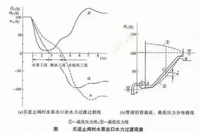 以上为水泵不装止回阀的后果。同时,泵后的压力变化将以水锤波的形式沿着出水管道向出水池正射,再由出水池反射回来,在出水管道中形成复杂的水锤现象,防水锤现象的止回阀产品可以选用防水锤止回阀。