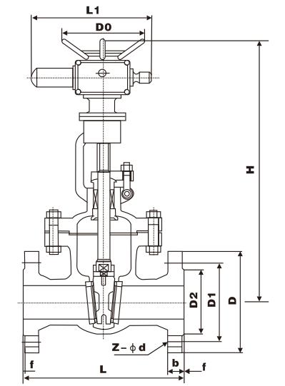四、Z941H电动法兰闸阀特点主要外形尺寸及重量